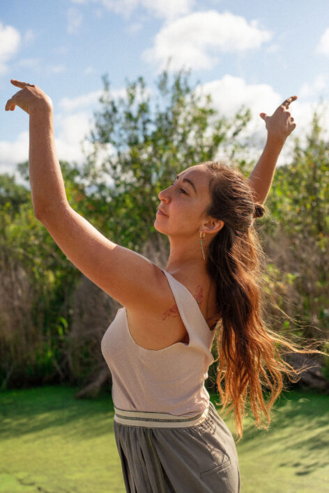 Leila Awadallah is a dancer, choreographer, and community collaborator in Minneapolis, Mni Sota Makoce and sometimes Beirut. She is the Artistic Director of Body Watani Dance project alongside her sister Noelle Awadallah. Her artistry holds Palestine at the center —rooting her embodiment in practices of resisting settler colonial occupation while invoking / conjuring / demanding Right of Return and cultural INTIFADA. Leila has received multiple fellowships: DanceUSA, McKnight, Jerome Hill, and Daring Dances. Her artistry is meaningfully impacted by her years working with Ananya Dance Theatre, Theater of Women of the Camp (Lebanon) and El-Funoun (Palestine). She is a recurring artist-in-residence at the Arab American National Museum (MI), Red Eye Theater (MN), and holds a BFA in Dance from the University of Minnesota.