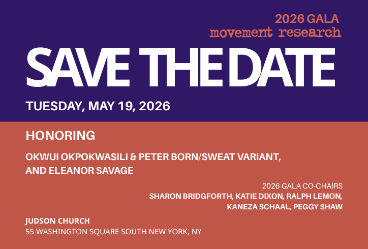 Movement Research depends on the generous contributions of individuals like you. Thank you for your support!